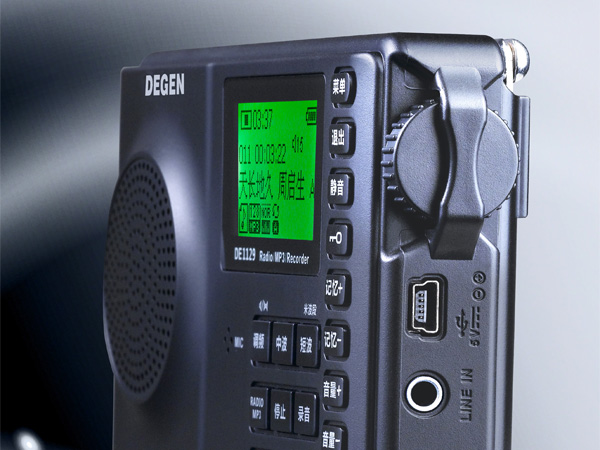 功能介绍FM(调频):87.0-108.0MHz或64.0-108.0MHz(校园广播)MW(中波):522-1710KHzSW(短波):2.30-23.00MHz预存248个电台频率收音信号强度指示高频立体声五种调谐方式:(编码旋钮/手动/自动/记忆/ATS)大尺寸LED背光点阵屏,全面支持中文显示播放功能:MP3与WMA解码多种循环播放模式多种音效模式变速播放功能A-B复读录音功能:MIC录音、录制收音机MP3/WAV录音格式选择可作为有源音箱电子书功能:TXT文档阅读智能定时开关机闹钟功能睡眠关机(05-90分钟)支持软件升级支持多种语言内置4G大容量闪存,支持MICRO SD卡播放按键锁定开关电子音量控制(31级)内置顶级超级重低音振动膜及宽频音响型扬声器MINI-USB接口,USB2.0高速传输智能充电,可连接电脑充电电池电量指示,电量不足自动关机可拆卸电池,更换电池更方便整机尺寸:130*78*30MM重量(含锂电池):约145G附送配件:USB连接线、锂电池、操作指南