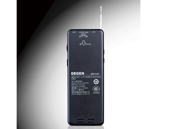 FM(调频):87.0-108.0MHz或64.0-108.0MHz(校园广播)MW(中波):522-1710KHzSW(短波):2.30-23.00MHz预存248个电台频率收音信号强度指示调频立体声五种调谐方式:(编码旋钮/手动/自动/记忆/ATS)LED背光点阵屏,全面支持中文显示播放器功能:MP3与WMA解码多种循环播放模式多种音效模式变速播放功能A-B复读录音机功能:MIC录音、录制收音机MP3/WAV录音格式选择电子书功能:TXT文档阅读智能定时开关机闹钟功能睡眠关机(05-90分钟)支持软件升级支持多种语言内置闪存按键锁定开关电子音量控制(31级)MINI-USB接口,USB2.0高速传输智能充电,可连接电脑充电电池电量指示,电量不足自动关机可拆卸锂电池,更换电池更方便附送配件:立体声耳机、USB连线、锂电池(1块)、布袋、操作指南